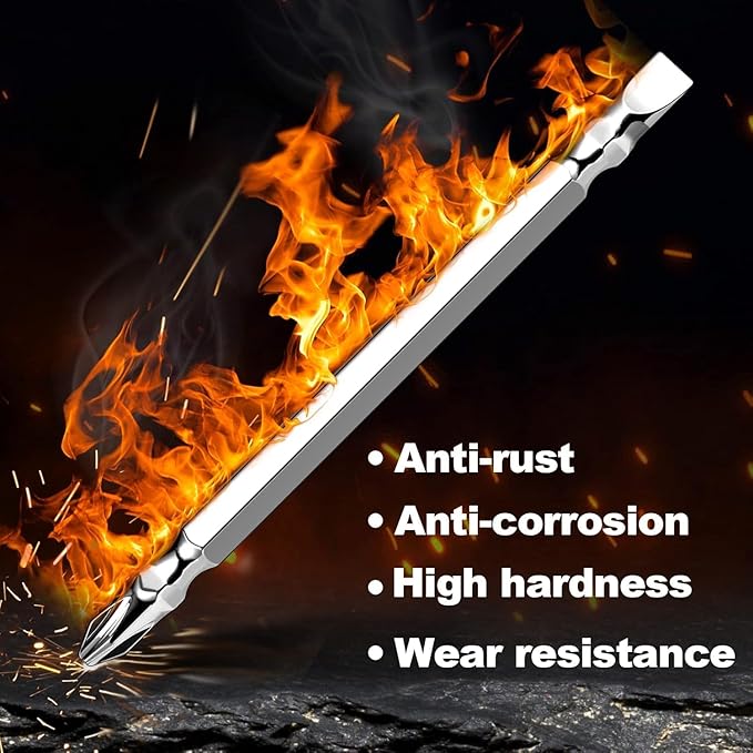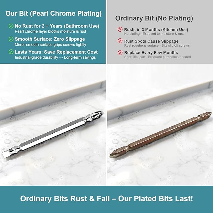 - 【Rust-Proof S2 Steel Bits】5 electroplated bits with pearl chrome finish resist corrosion (passed 48H salt spray test). High-hardness 60HRC steel withstands high-torque use.