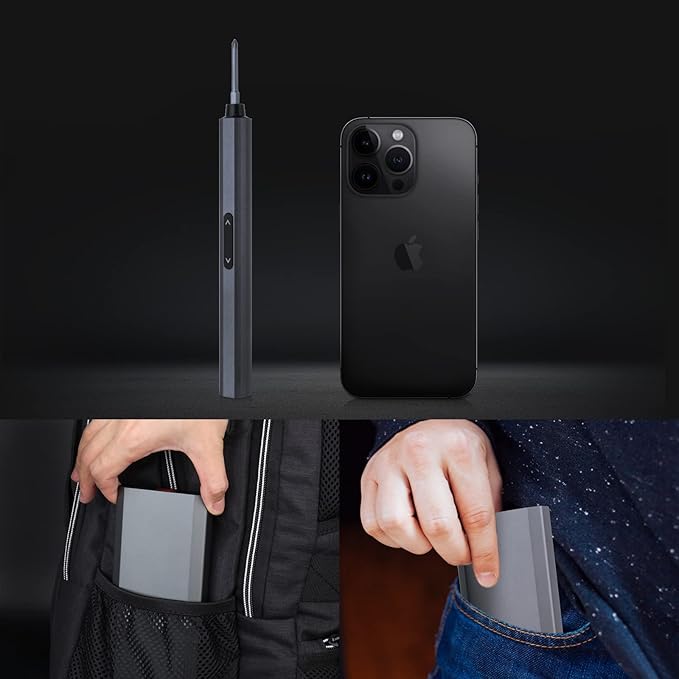 - 5. The electric screwdriver set comes with an aluminum case packing. The storage case and the screwdriver body are both made of high-quality aluminum alloy, making them comfortable to hold. The anodized surface finish is non-slip and sweat resistant, and is less prone to rust.