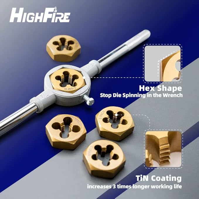 HIGHFIRE 86 pcs Tap and Die Set, SAE and Metric Standard, Large Tap and Die Set with Hex Shape, Titanium Coated Tap and Die Set with Storage Case, All-in-One Tap and Die Set