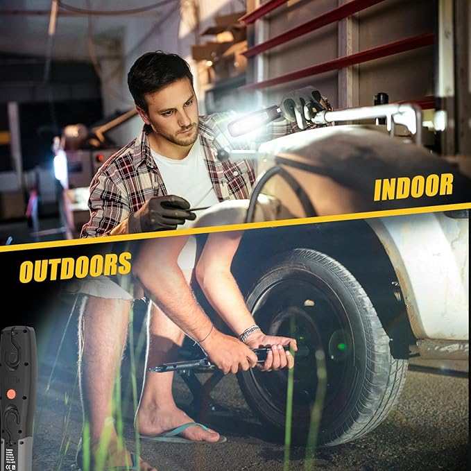 Luasmx Rechargeable LED Work Light, Black, Portable Hook Mechanic Flashlight for Car Repair/Mechanics/Camping/Emergency
