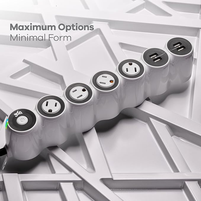 - 4 Outlet Surge Protector - Compact and easy to use, 360 electrical surge protectors are a convenient and practical solution for anyone looking to protect their many electronics from electrical disturbances. Includes 4 rotating plugs, 4 USB-A ports, and LED indicator lights ensure protection is alive and electrical wiring is grounded.