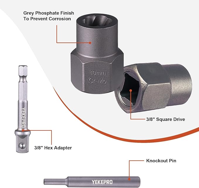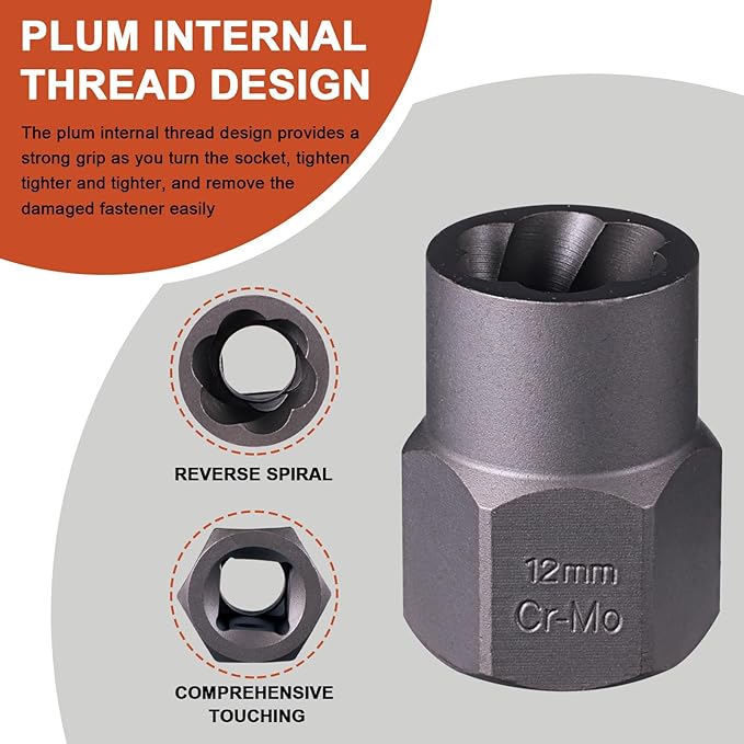 - EASY OUT BOLT EXTRACTOR SET: Each nut extractor socket set is made of high-hardness chrome-molybdenum steel, gray oxide finish prevents corrosion and increases durability