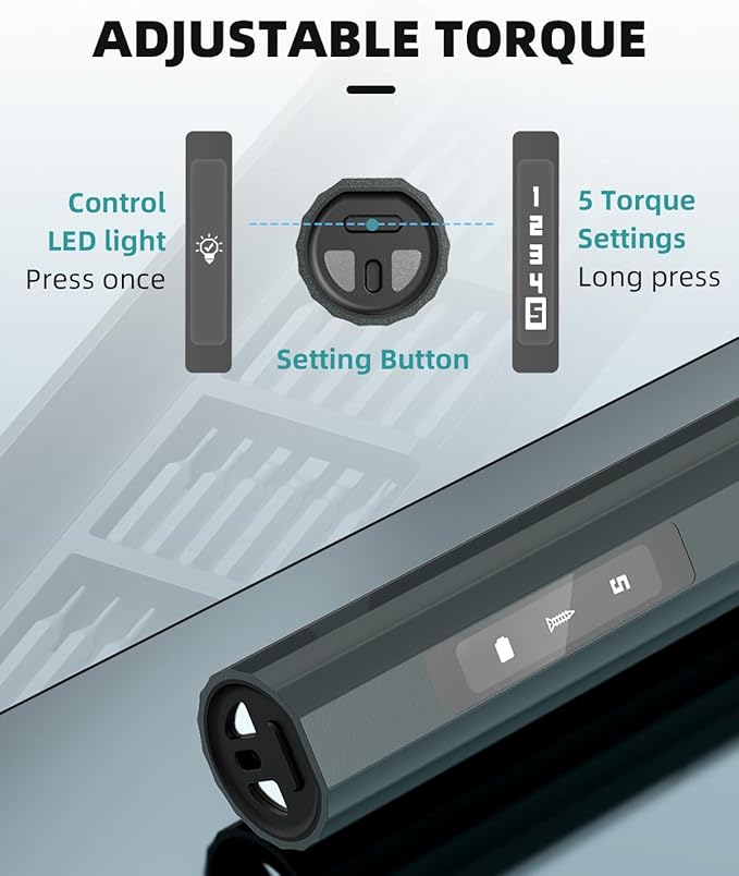 - 【5-Speed High-Precision Torque】Our lightweight, pen-shaped mini electric screwdriver set boasts 5 adjustable torque levels (ranging from 0.05 Nm to 0.2 Nm, with up to 3 Nm in manual mode). The drill and electric screwdriver's high-precision bite ensures accurate and reliable repairs, while its high stability and precision make it an indispensable tool for delicate tasks."