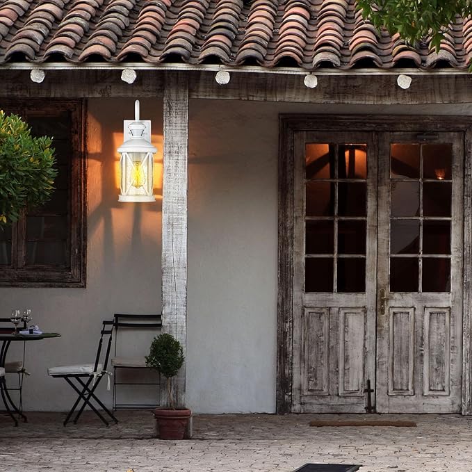 - Impressive Exterior Design: The Outdoor Wall Sconce Light is designed to complement the architecture of any house or building. It features a white finish and seeded glass cover that adds style and character to your porch or patio.