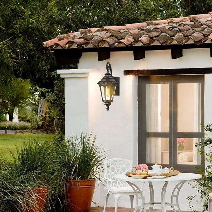 - Impressive Exterior Design: The Outdoor Wall Sconce Light is designed to complement the architecture of any house or building. It features a sleek black finish and clear glass cover that adds style and character to your porch or patio.