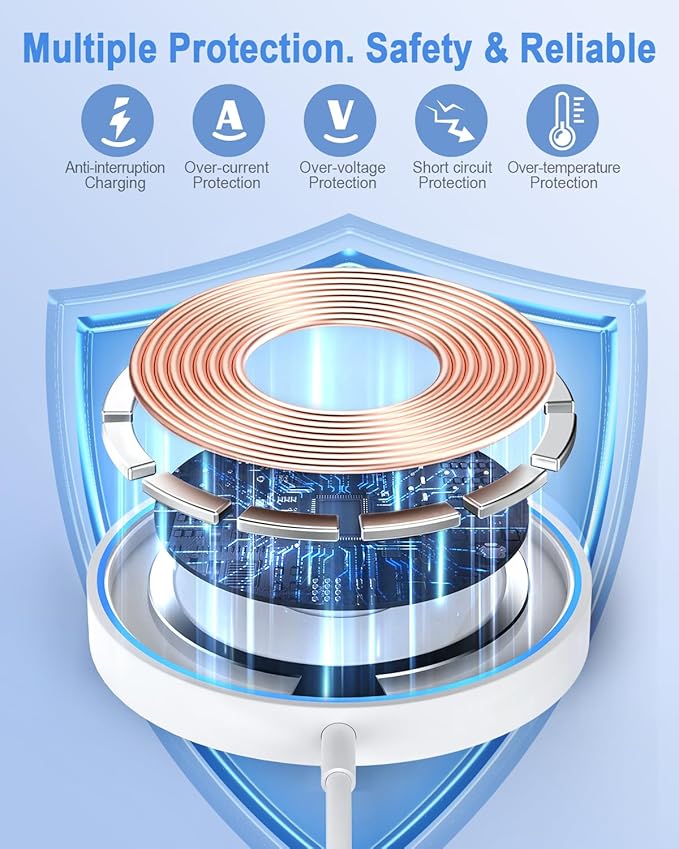- Safety & Reliable: Wireless charger is made of high-quality materials and advanced Mag Safe magnetic coil, provide multiple intelligent protection. The intelligent charging technology safeguards against overcharging, overheating, and short circuits, ensuring the longevity of both the charger and your devices