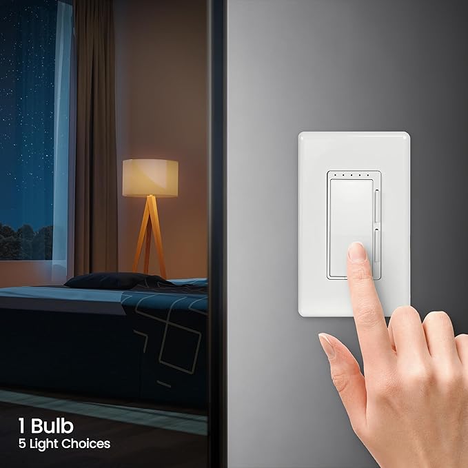 - ✓ CHOOSE YOUR COLOR WITH A FLIP OF THE SWITCH: Cycle through five color temperatures: Soft (2700K), Bright (3000K), Neutral (3500K), Cool (4000K), and Daylight (5000K)—just by flipping your light switch. Or, set your preferred color right on the bulb before installation.