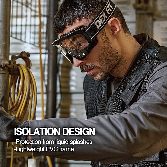 DEX FIT Protective Safety Goggles SG220B; Anti Fog & Scratch, Z87 Eye Protection for Lab, Science, and Chemistry Work, Indirectly Vented, Adjustable for Women and Men, (Black Frame, Clear Lens)