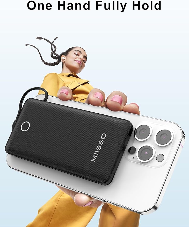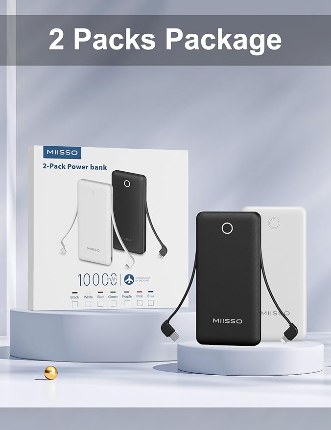 - Universal Compatible with Most Devices: As portable phone charger builts in 2 cables, it is widely compatible with most cellphones or tablets. Widely compatible with iPhone 16, 15, 14, 13, 12, 11, 8, 7, AirPods, Samsung S24, S23,S22, S21 and other andorid USB C or Micro USB phones, tablets