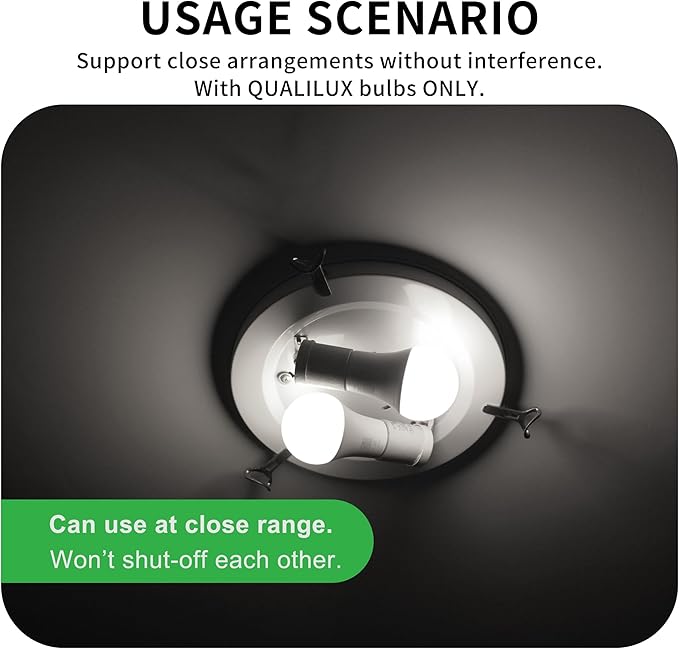 - ✅【Support Close Arrangement】Thanks to QUALILUX's unique technology, these A19 light sensing bulbs are able to distinguish between their own light and other sources of light, providing an ideal solution for situations where two or more bulbs are closely arranged, ensuring they do not interfere with each other. Please note that this function is exclusive to QUALILUX Dusk to Dawn Bulbs. It doesn't work with bulbs from other brands.
