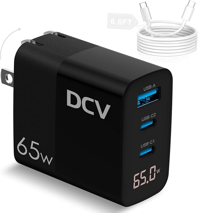 - What You Get: DCV 65W GaN PD 3.0 Wall Charger (3 Ports), 6.6ft C to C Cable, our worry-free one-year warranty, and friendly customer service. If you encounter any problems using the USB C charger, please feel free to contact our professional customer service team.