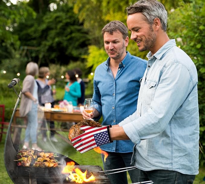 - You Are At The Top Chef League- after we did a market survey among top chefs and grillers, we succeeded in making the ultimate comfortable kitchen oven mitts with non-slip grip, and one-sized gloves that fit perfectly to men and women alike. Just the perfect set of 2 that will protect you from any danger, from the heat that's coming from your smoker or barbecue gas grills outdoors, to the top of your stove indoors! We got you covered! Don't settle for a cheap imitator. Great gift idea for Dads.