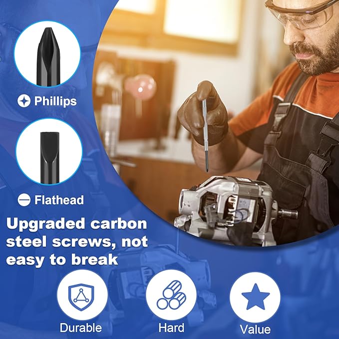 - 【Longevity and Durability】Our small phillips screwdriver is made of high-quality chrome vanadium steel material, hardened carbon steel shaft, black oxidation treatment, durable and corrosion-resistant.