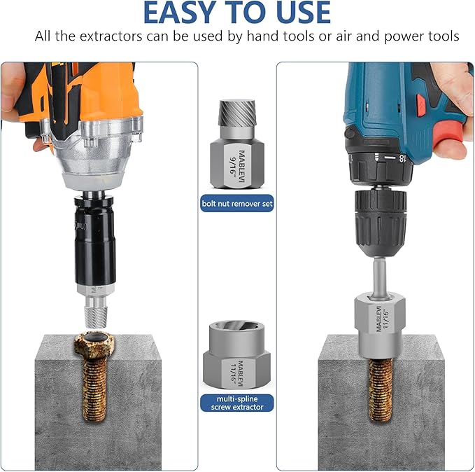 - 【Exquisite Workmanship】Easy out style spiral flutes embed themselves and the internal thread design provides excellent torque to increase grip as resistance increases. Work perfectly with air or power tools to remove broken studs, bolts, socket screws.