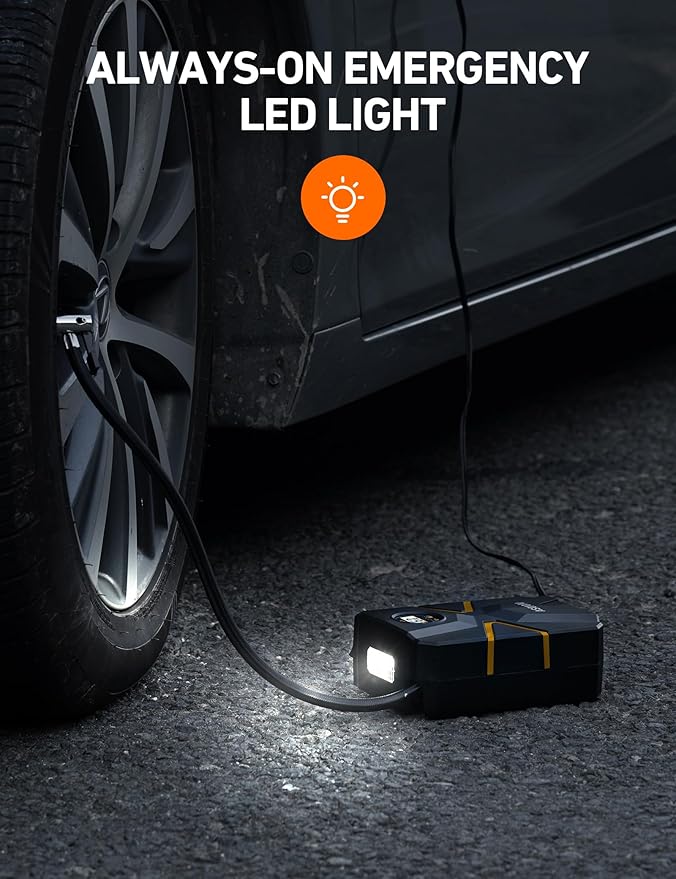 - Ultra-Long Power Cord & Emergency LED Light: With a 1.57ft long air hose and a 9.87ft long power cord, the car tire inflator is easily connected to any tire. The integrated LED light is great for emergencies and working in dark environments. When the digital tire inflator is powered, the LED light will illuminate.