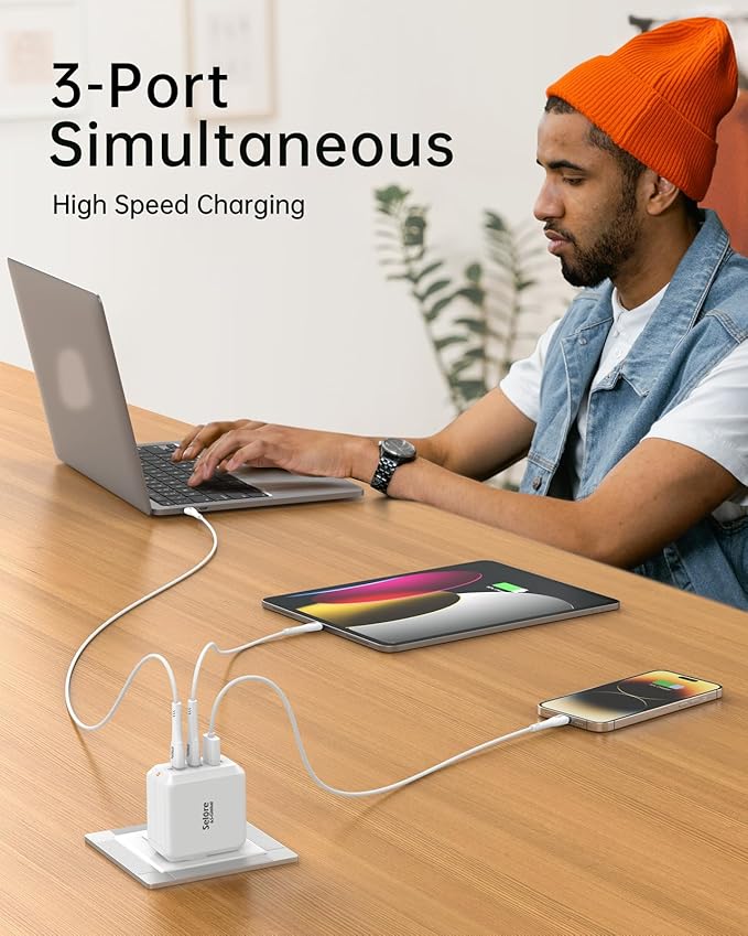 SELORE 67W USB C Charger Block, GaN Foldable Fast Charging Block, 3-Port Wall Charger Adapter with USB-C Cable for MacBook Pro/Air, iPhone 17/16/15/14/13/12/11, iPad Pro, Galaxy S25/S24/S23, Tablets