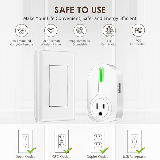 - 【Effortless Home Control】Take charge of your lights and appliances effortlessly, even from distances of up to 100 feet, thanks to the smart wireless remote control cutlet