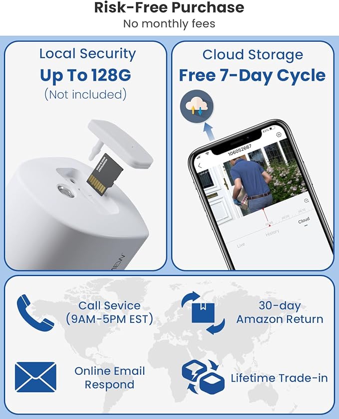 - [Enhanced Mubview App & Truly Risk-free Purchase] Live viewing four security cameras wireless outdoor with phone app simultaneously. All your footage is kept private and secure. You can choose to save videos to a Memory card(not included) or the cloud as needed. Mubview ensures you a 36-month pleasant experience and lifetime top customer service. Please feel free to let us know if have any questions about this outdoor security camera.