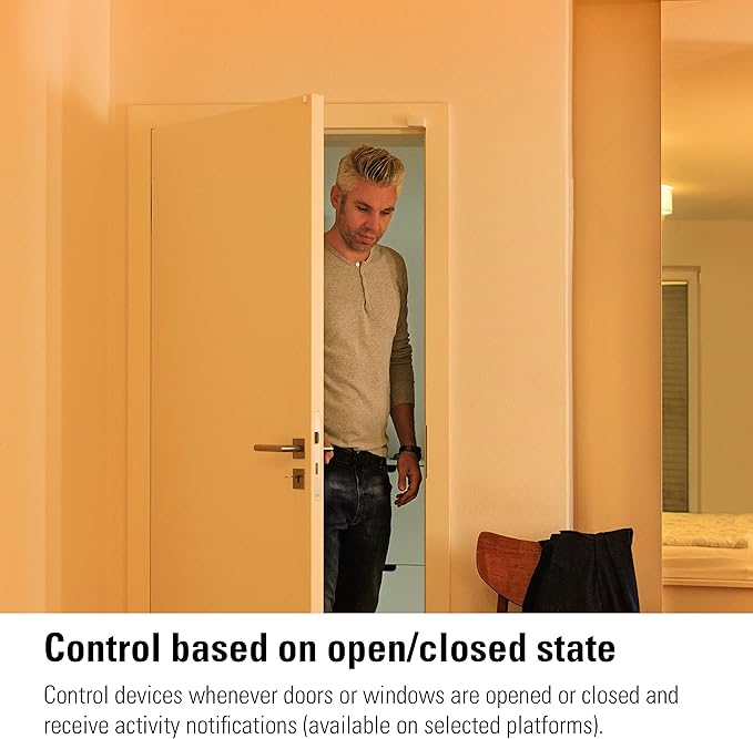 - Check your door or window: See the current open/closed state at a glance. Create automations to control other connected devices in your home whenever doors or windows are opened or closed (available on selected platforms).