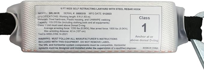 - ✅SAFE – The AFP 6 FT single-leg self-retracting lifeline is made with a smooth, lightweight, heavy-duty, high-strength polyester webbing sewn to reduce impact forces with a substantially secure heavy-duty 1.97-inch double-locking gate. Swivel top carabiner feature prevents webbing from twisting and binding which reduces the risk of falls and fatigue.