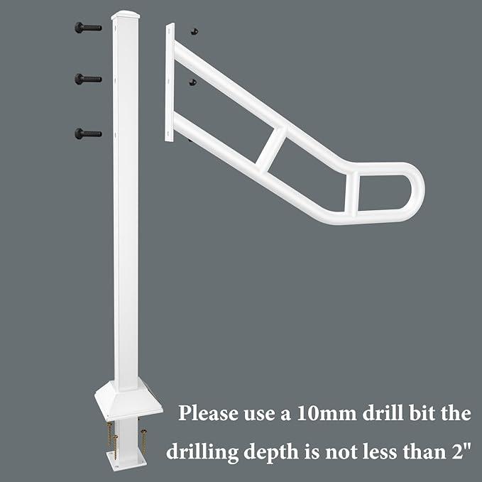 - ๐ STYLISH & DELICATE STAIR RAILING - Unique and practical design of hand rails for outdoor steps, its heavy-duty 1.53" x 1.53" square steel tube post determines its stability than others of the same type. With elegant white smooth powder coated surface, it is durable, anti-skid, anti-corrosion and rustproof. You can also DIY your desired color to match your decor.