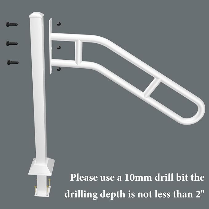 - ๐ฅ EFFORTLESS INSTALLATION - The metal outdoor porch railing is easy and quick to install, comes with all the accessories needed for assembly and with pre-drilled holes. Simply select your desired location, install the post first, and then attach the U-shaped bend tube to the post. It can be mounted on brick, cement, or wooden steps.