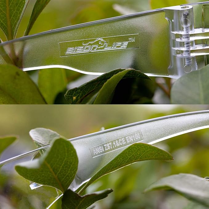 BISON LIFE Clear Lens Clear Temple Safety Glasses | One Size, Adult, Youth, Clear Protective Polycarbonate Lens Clear Temple, Clear, 24 PAIRS