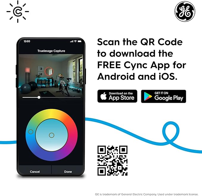 - Millions of Vibrant Colors: Use the Cync app's color wheel and TrueImage technology to elevate the vibe and enhance your home decor; easily select colors, change modes, adjust brightness, smart timing, set daily schedules and more