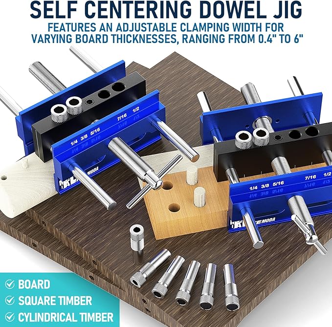 Upgraded 6.7 inch Self Centering Doweling Jig Kit, Drill Jig For Straight Holes Biscuit Joiner Set With 6 Drill Guide Bushings, Adjustable Width Drilling Guide Tool Accessory Jigs (Blue)