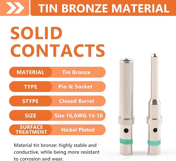 - 【16# Pin/Socket】: Optimized for 14-18 AWG wire gauge. Tinned copper leads enhance stability, improve conductivity and reduce crimp resistance