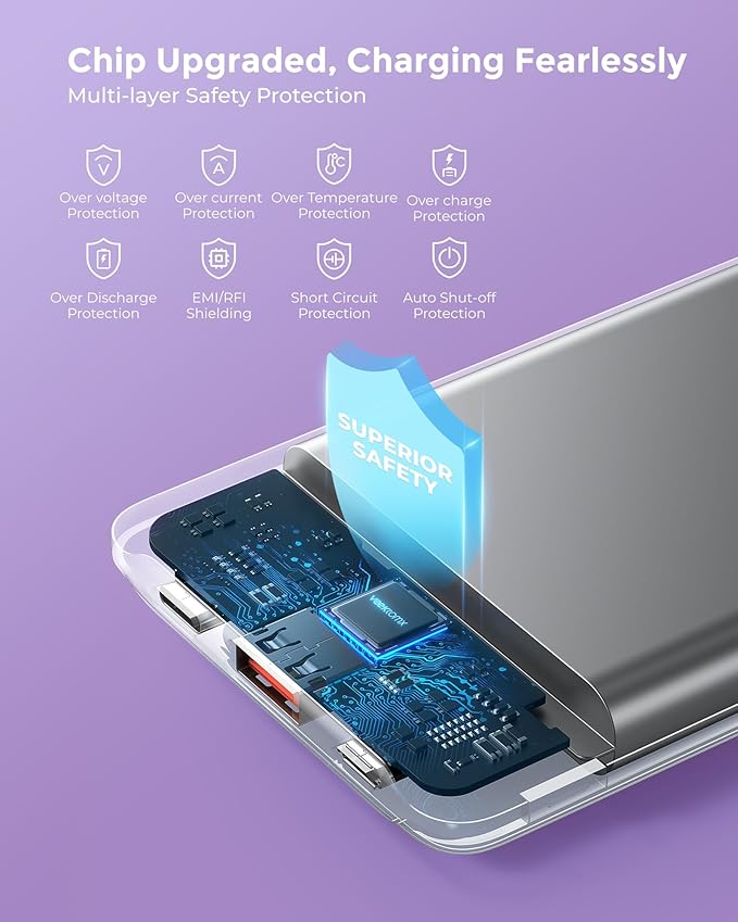 - [ From VEEKTOMX Multi-Layered Safety ] Certified by CE, RoHS, FCC, the VEEKTOMX mini power bank features a constantly upgraded intelligent chip that ensures smarter, safer charging. With temperature-sensing technology that automatically stops charging in extreme heat, and multi-layered protection against overcurrent, overcharging, overheating, and short circuits, VEEKTOMX is designed to give you added confidence and protection while charging.
