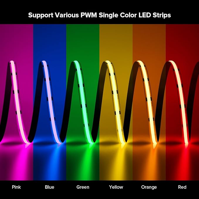 - 【Compatible Lights】Only support PWM 5050SMD 3528SMD 5630SMD Single Color FCOB COB Single Color 2 wires(+V -V) LED strip Neon Rope light. CAN NOT work with SPI LED strip light with IC, such as WS2811, WS2812B, WS2813, WS2814, WS2815, SK6812 etc.