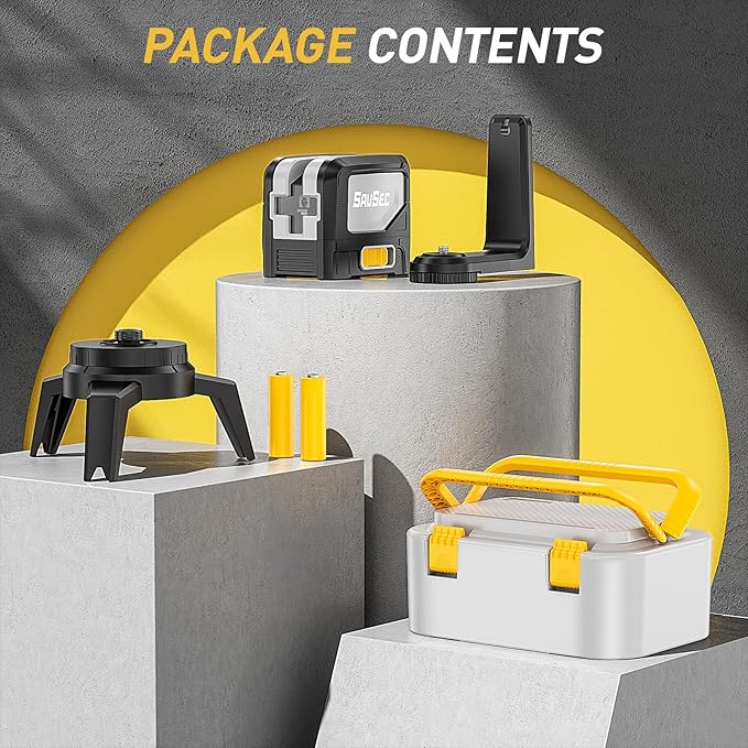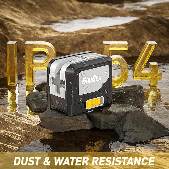 - DURABLE DESIGN & KIT CONTENT: SAVSEC 2 IN 1 Laser Level is protected by TPR soft rubber, which is shock-resistant, abrasion-resistant and impact-resistant. IP54 waterproof/dustproof, to ensure your normal and stable work under various working conditions.1 x SAVSEC 9211G Laser Line Level, 1 x User's Manual ,1 x Magnetic L Mount,1 x Tripod Mounting Base, 2 x AA Batteries ,1 x Hard Carrying Case