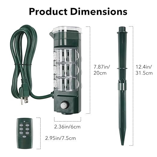 - 【Heavy-Duty Outdoor Design】 The 12-inch green stake blends into your lawn or garden, and the timer is built to handle extreme weather, including snow, wind, and rain. Each outlet has its own waterproof cover for added protection. With durable, weather-resistant materials, this outdoor timer is perfect for year-round use.