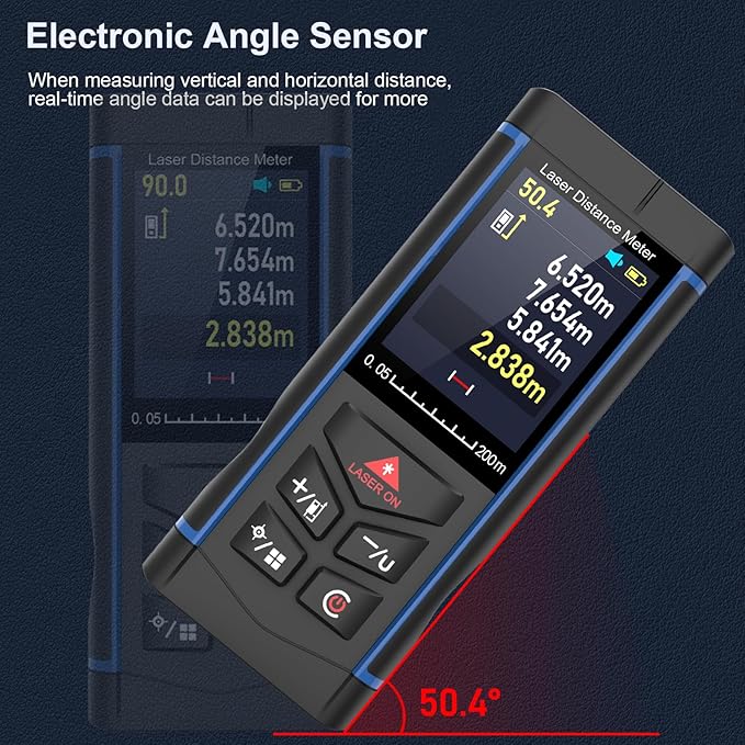 - Ultra-Long Range Laser Measuring Tool measures up to 650 feet (200 meters) with ±2mm accuracy. Ideal for large-scale outdoor and indoor construction, home renovation, and real estate projects.