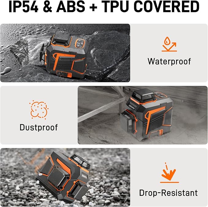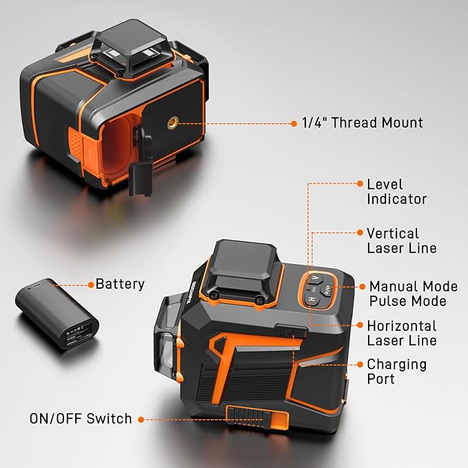 - 【Three Modes & Remote Control】Self-leveling within 5s within ±4°, more than 4° alarm. Manual mode meets multi-angle lock line. Pulse mode extends to 200 feet.Remote control range 10m