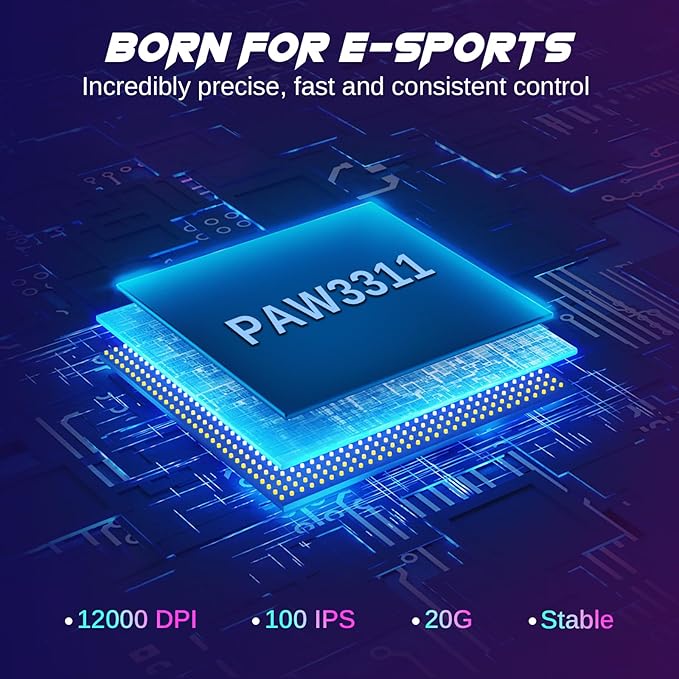 - 【E-Sports Sensor】Incredibly precise, fast and consistent control with PAW3311 Sensor, this gaming mouse features with high precision sensor up to 12000 DPI, offers on-the-fly sensitivity adjustment through dedicated DPI buttons (reprogrammable) for gaming and creative work.