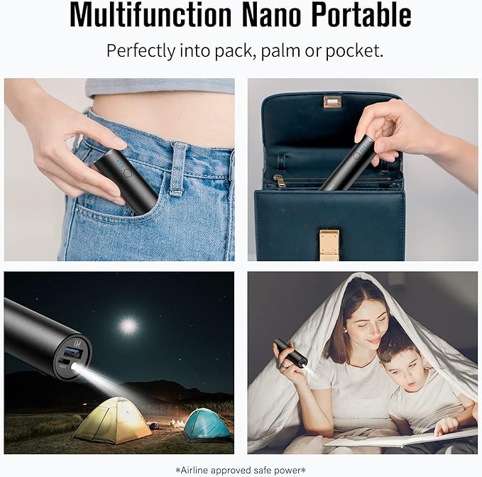 - Long life Backup Flashlight: With built-in LED flashlight, this small portable phone charger can be used as backup flashlight for emergency, Long press button 3s, it will light up the dark for you.