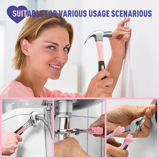 Sundpey Home Tool Kit 148-Pcs - Household Starter Basic Hand Repair portable Tool Set with Case & Ratcheting Screwdriver & Hex Key & Pliers & Wrench & Voltage Tester & Water Pump Plier for Women