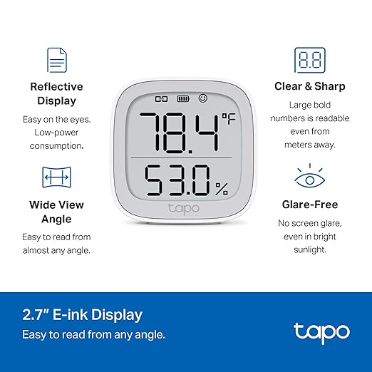 - 【Real-Time & Accurate Monitoring】Featuring the Swiss-made sensor chip, Tapo T315 provides high accuracy and real-time data updating every 2 seconds. (Accuracy: ±0.54°F, ±3% RH)