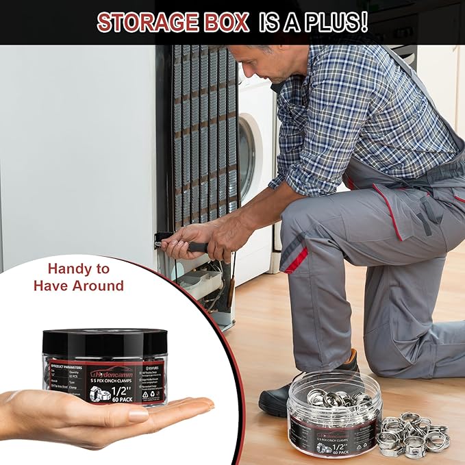 60 Pack 1/2 Inch PEX Cinch Clamps, Premium 304 Stainless Steel Cinch Crimp Rings, Cinch Clamps Rings with Storage Case for PEX Tubing Pipe Fitting Connections By Hydencamm(1/2"x60)