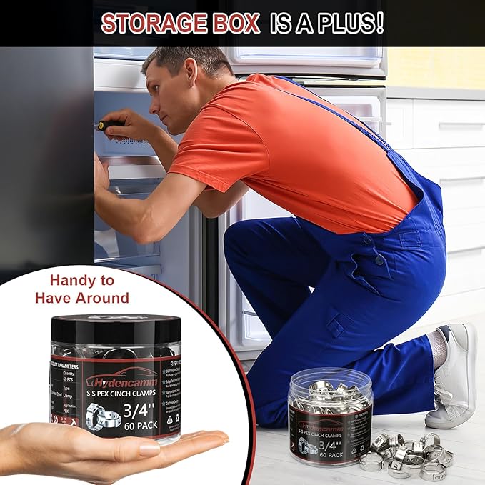 - ✅[360-Degree Seal Protection] The crimp rings pinch clamps will seal the pipe 360 degrees tightly, ensuring a clean and professional finish to your plumbing projects. Come in a plastic container to keep them in. The storage box is a plus!