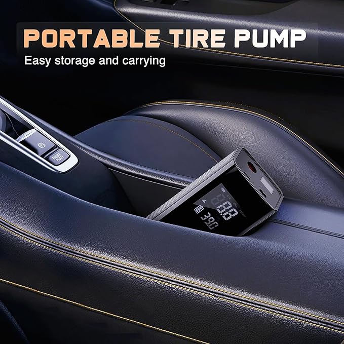 - Package Includes: Portable air compress pump, 12V car cigarette lighter power cable,Type-C charging cable, Inflation tube, Bundled cloth bag, 3 nozzles, a replacement fuse and an instruction manual.