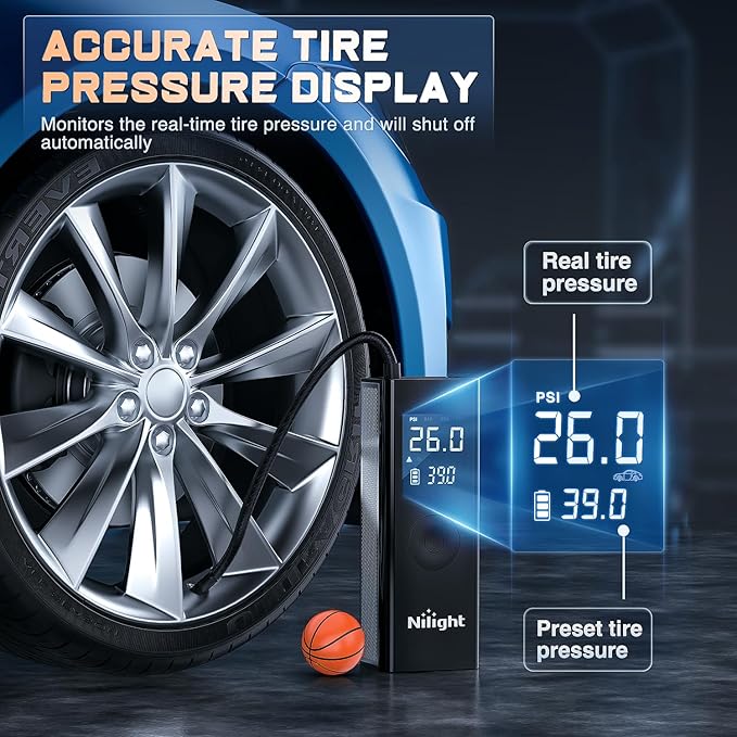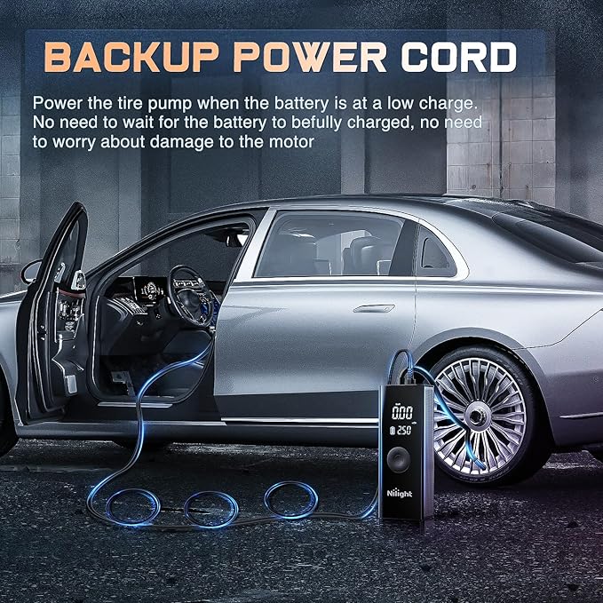 - Digital Display & LED Lighting: 4 pressure measurement units of PSI, KPA, BAR, KG/CM2. The tire pressure will be displayed on the screen of the air pump so that the pressure can be better controlled when inflating tires to ensure safety. Furthermore, the air pump comes with a LED lighting feature includes backup light, warning light and flash light modes to support your inflating needs in dark environment.