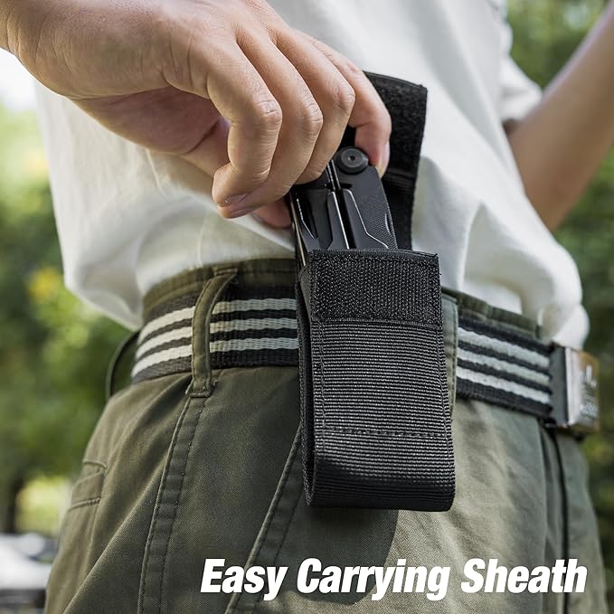 - Everyday Carry: The multipurpose tool is small, foldable, lightweight and extremely portable with easy carrying sheath. You can attach it to your belt or pocket with the sheath or carabiner. Durable sheath conveniently stores tools and prevents dust when not in use.
