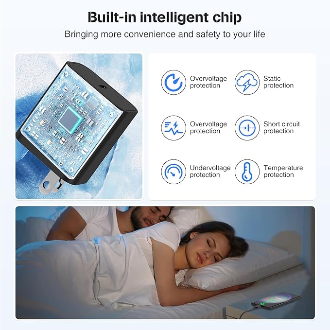 - Safe 45W Type-C Charger Block & USB-C Cable - The upgraded copper core enables 60W charging efficiency. An enhanced chip prevents overheating,overvoltage and short circuits. It offers superior safety,durability and faster charging compared to 25W charger