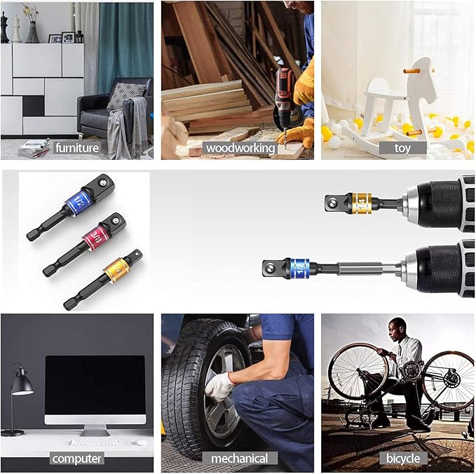 - 【Versatile impact socket set for most tools】CIGOTU Drill-accessories are huge in variety and practicality. Whether it’s a screwdriver, electric drill, universal socket, or cordless impact driver, these impact driver bit set will drive pretty much all size of sockets and come in handy. With this drill to socket adapter, the options for your impact drivers and guns are almost endless. This is an easy way to adapt sockets on to your impact. A must piece of equipment in your tool box