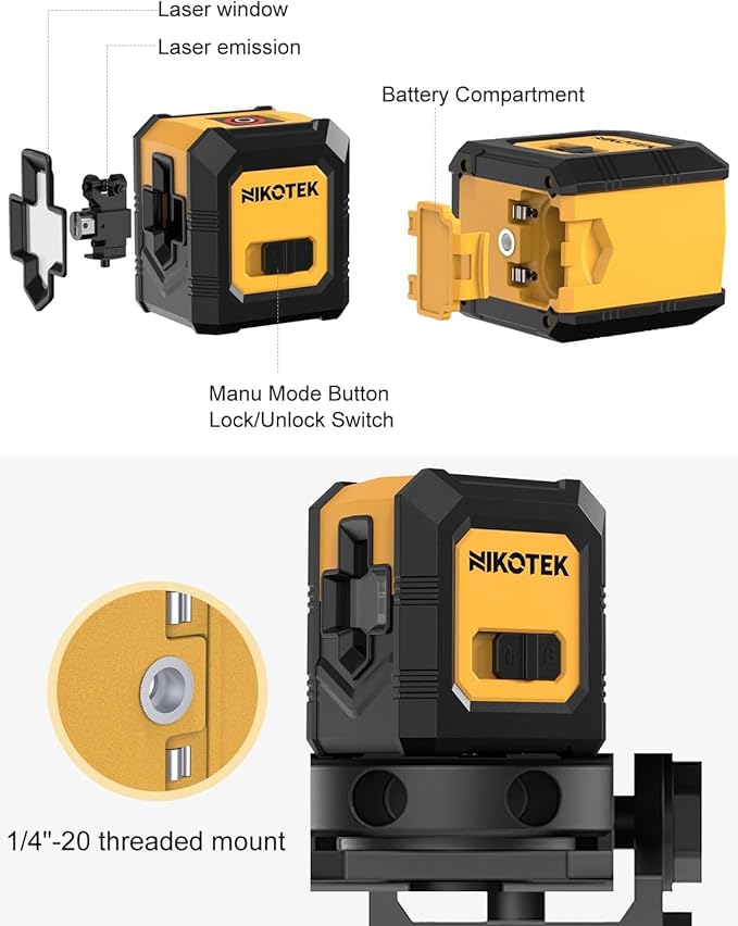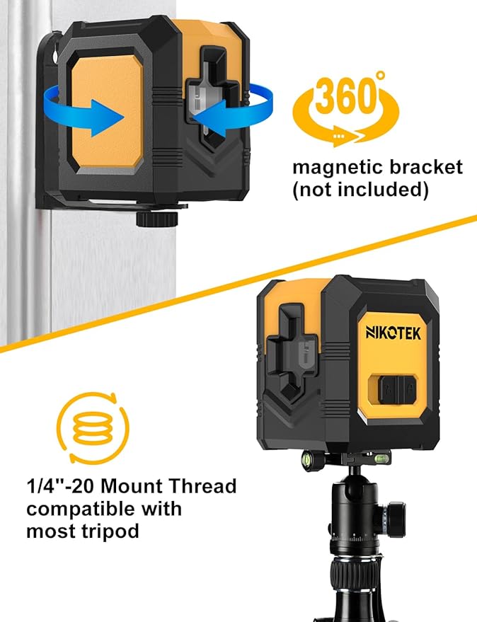 - Easy to Use: Simply slide the side button on the laser-level tool and start working. It also features a 1/4'' screw hole on the bottom, allowing compatibility with most tripods.