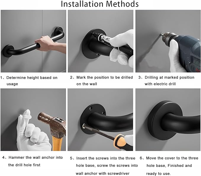 - Easy to Install: You can install the grab bars including screws at anywhere you want with our assembly instructions. It is not only practical but beautiful after you install in your bathroom