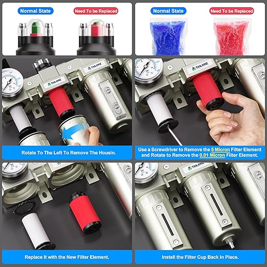 TAILONZ PNEUMATIC 3/4 Inch NPT Industrial Grade Three Stage Air Drying System, Coalescing Filter, 0-240PSI Desiccant Dryer and Air Regulator (Manual Drainage)